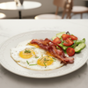Perfectly cooked eggs, a runny yolk paired alongside fresh seasonal vegetables. This classic breakfast combines protein-rich eggs with nutrient-dense produce, delivering a satisfying and wholesome start to your day.